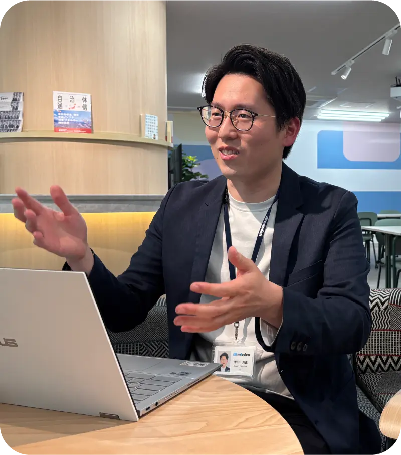 コロナ禍を経て、近年では業務効率化や残業削減を目的としたシステム提案の機会が増えています。そして本当の意味での業務効率化を実現するためには、外部からお客様の日々の業務を客観的に見て、ルーティン化した作業の中に改善点を見つけることが肝心です。私はお客様との間に、仕事以外の会話や日常的なコミュニケーションの時間を持つことを重視しています。今は国の政策で自治体のシステム統一化が進む転換期。会社としては、従来のミエデンの強みを活かしつつ顧客ごとのニーズに合わせた柔軟な提案を、私個人としては、これからもお客様が相談しやすい関係づくりを心がけて、もう一歩踏み込んだ業務改善提案を行っていきたいです。
