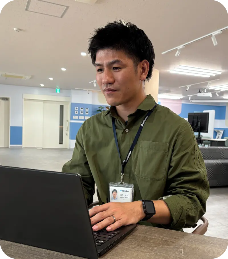 ミエデンは創業より、県庁・自治体や公団体に特化したシステムを取り扱ってきた会社ですが、近年ではそのノウハウを活かして民間企業やヘルスケア分野を対象にしたシステム・サービスも提供しています。私はその中で、民間企業向け業務システムの保守サポートを行うグループに所属。これまでに、食品会社の在庫管理システムや蓄電池工場の在庫・生産管理システムの改善プロジェクトなどを担当しましたが、自発的に客先の新規開拓業務にも取り組んでいます。様々な企業のお困りごとをヒアリングし、担当者の方と一緒に課題をクリアする方法を考え、最適なシステムを開発するのが好きなんですね。そういう意味では、仕事を楽しむことが「現状をもっと良くする」ための原動力になっているのではないかと思います。