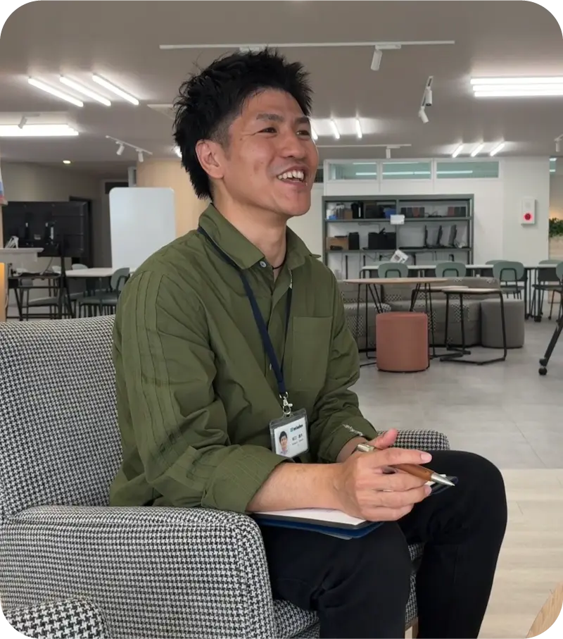 もともと鈴鹿市出身で大学も三重。「地元をもっとよくしたい」という想いで日々働いています。経営企画本部に異動した2023年には、本社2階のリノベーションを中心とした「オフィスリニューアルプロジェクト」に参画。これは経営企画本部で策定した中期経営計画の一環で、「事業を支える環境整備」の象徴としてオフィス内に次世代ワークプレイスを構築するというものでした。当社では近年、社員数増加による会議室や休憩スペースの不足、部門間の協働スペースの在り方などの課題が浮き彫りになっており、「地元をもっとよくするために、まずは自分たちが働く環境をもっとよくしていこう!」と考えたんです。